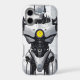 Protect your essential daily technology with a phone case that embodies the ultimate fusion of man and machine. The vertical format of this tough case perfectly frames the powerful upper torso and intense gaze of a sleek, white-armored cyborg. Rendered in an aggressive, highly detailed graphic novel style, the android's glowing yellow energy core and glowing blue eyes pop brilliantly against the dark, industrial background, giving your device a truly heroic, mecha-inspired aesthetic.