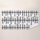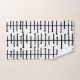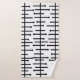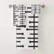 This towel set has a mid-century modern design of a series of atomic lines on a field of white.