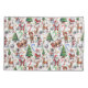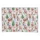 Christmas-themed pattern featuring Santa Claus, reindeer, snowmen, elves, Christmas trees, candy canes, and snowflakes on a white background