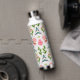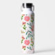 This water bottle has a white background with pink flowers.