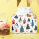 A festive scene is depicted on a white background, featuring a charming pattern of houses and trees. The houses are quaint and cosy, resembling a Christmas village with their unique designs. The trees are lush and green, adding a touch of nature to the scene. The overall colour scheme includes shades of cream, yellow, pink, brown, and green, with a vibrant red accent. This delightful composition exudes a cosy and inviting atmosphere, perfect for the holiday season. The intricate details of the houses and trees create a harmonious and picturesque display, evoking a sense of warmth and joy.
