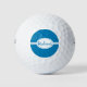 Golf balls decorated with a blue circle with your name or monogram on a white oval shield with a white band both with a decorative stripe. Create a personal gift for a golf lover together with matching items with the same design.