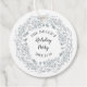 Gift tag with a grey on white, featuring a winter berries wreath. The back of the tag is left blank for a personal message.