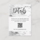 White birch wedding enclosure cards with QR code. Direct guests to your wedding website for wedding details. Black and white design, with a place for the website URL also. Create a short message and add your own QR code to the template. Check it for accuracy.