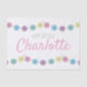 Custom happy birthday tissue paper with multicoloured buttons on threads.