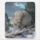 Charging through the winter comes a massive white buffalo. Determined and angry, it breaths steam from its nostrils as it glares at you. As it thunders towards you across the fir tree strewn hillside, it kicks up a shower of snow.