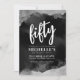 Fun Girly Watercolor Black White And Silver 50th Birthday Invitation. You can change it to any birthday year! 30, 40, 60 or even for other events entirely! Let's celebrate that she's fifty with this elegant but girly black and white fiftieth birthday party invite. Featuring a trendy black background and faux silver watercolor or alcohol ink to give the backdrop to this invite, and white script calligraphy typography mixed with a mix of simple modern and classic serif fonts.