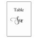 The table number is written with an elegant hand lettered style script. Black letters, white background. This table number is also available in rose gold.