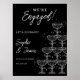 This stylish engagement party welcome sign features a hand-drawn champagne tower in white ink on black, balanced with modern serif and calligraphy fonts for a clean, timeless look. The monochrome design pairs beautifully with any event palette, from minimalist neutrals to glitzy golds. It's perfect for entryways, bars, or gift tables. Ideal for cocktail parties, rooftop events, or winter engagements, this sign sets the tone with just the right amount of charm and class.