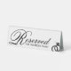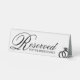Elegant black and white wedding reserved table tent with shiny diamond ring. Personalise it with your event details.