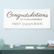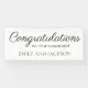 White with an elegant black script engagement party "Congratulations on your engagement" banner personalised with the names of the bride and groom.