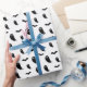 White & Black Fun Halloween Ghost & Bats Pattern Wrapping Paper