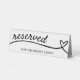 Cute black and white wedding reception reserved table sign with heart line. Personalise it by adding your event text details.