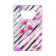 * Rose Gold Modern Bold Trendy Popular floral bar key or credit card bottle opener with a diagonal pattern of pink black and lavender brush strokes on a white background.