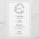 White Black Leafy Crest Monogram Wedding Menu