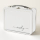 White Black Modern Script Monogram Name Metal Lunch Box