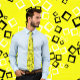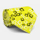 A cool retro necktie featuring a pattern of randomly placed squares in black and white on neon yellow.