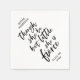 Stylish graduation napkin featuring black brush script of the quote "though she be but little she is fierce" from A Midsummer Night's Dream by William Shakespeare against a white background.
