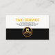 A white and black layered cover with the black piece forming the basis of a simple negative space design. Two intertwining caption remarks i.e. "TAXI" and "SERVICE" sit on these layers. ; You can change the captions to suit your own service needs. Near the base of the card lies the contact details in yellow.