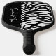 Trendy durable pickleball paddle with contemporary retro black and white coloured zebra skin print pattern. With room to customise or personalise with a name, monogram or initials of your choice. Ornate, funky, modern and whimsical hipster design for the lover of animals, wildlife and whimsical motifs. Show off your unique and personal style, look trendy and feel stylish and fashion forward with a unique design. Did you know August 8 2023 is National Pickleball Day? Get yourself a new paddle to celebrate and play a tough game on the court with it!