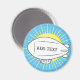 Cute cartoon style white blimp drawing. Bright yellow sun in the background. Custom magnets. Edit name on the balloon to customise it. Gift idea.