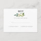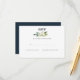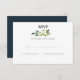 The White Bloom Bouquet RSVP Card features a small watercolor illustration with white roses with greenery bouquet, your desired response date, and custom accept and decline. Finish your design personalising your meal choices or entree selections beneath. The design is finished with a navy background on the reverse.