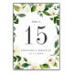 Chic floral table number cards feature a frame of watercolor white flowers, roses and peonies, framing your table number in white. Personalize with your names and wedding date, or name each table for an extra personal touch.