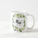 After the wedding, show off your new last name with this funny THE NEW MRS. Typography MUG with a floral frame of white roses and leaves