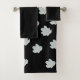 White Blossoms On Black Bath Towel Set