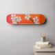 White blossoms on orange red spring background skateboard