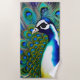 White blue and Green Piebald Peacock Beach Towel
