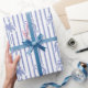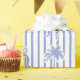 White Blue Coastal Palm Trees Bows Stripes Pattern Wrapping Paper