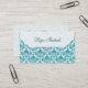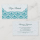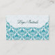 White & Blue Elegant Retro Floral Damask Business Card