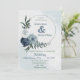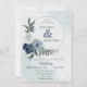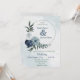 white & blue floral greenery wreath wedding invitation
