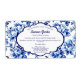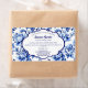 A product label for soaps, cosmetics, and bath and body care products featuring a white and blue floral design. Customise it with your business name, ingredients, and product information.