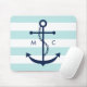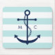 White Blue Mint Monogram Stripes Anchor Mouse Mat