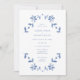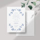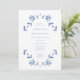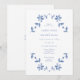 Chic with youthful elegance. This blue and white flat wedding invitation card exudes a fresh, modern and youthful tone. The front of the card includes invitation text in a contemporary set of fonts in dusty blue fonts inside a lovely floral frame. The back includes couple monogram in repeat floral frame.