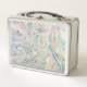White Blue Pink Modern Abstract Fluid Marbling Art Metal Lunch Box