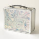 White Blue Pink Modern Abstract Fluid Marbling Art Metal Lunch Box