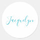 White Blue Plain Elegant Modern Calligraphy Name Classic Round Sticker