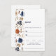 This French-Country-Bohemian-inspired wedding invitation RSVP has beautifully handpainted floral watercolors. It is an elegant yet simple invitation that is printed with a navy blue font. The card back is a solid white with the wedding couples' names. Easily edit the template to your bride and groom's names and wedding details. White Blue Rust French Country Floral Wedding RSVP. Navy Blue colour is Hex #2B324B.
