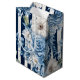 White Blue Stripes Floral Bridal Shower Medium Gift Bag