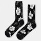 White & Blue Violet Graphic Floral Pattern Socks
