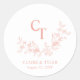 Elegant white, blush pink, and peach wedding monogram sticker, ideal as wedding envelope seal and/or favour labels. Two size options and several different shapes are available. Design with exquisite fine hand-drawn botanical details showcasing your initials in blush pink and peach hues. Ability to add any text or message you like. The same design with a background in peach or blush pink is also available. Part of our "Modern Elegant Typography Blush Pink, Peach Wedding" Collection with various coordinating products available including envelopes. Visit the entire collection here: https://www.zazzle.com/collections/modern_elegant_typography_blush_pink_peach_wedding-119830398928263190