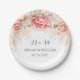 Customisable name wedding plates in white with light blush pink vintage watercolor flowers.