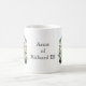 This mug holds 20 oz. to the top and 18oz without a spill risk. It is made in China. I really like it and am glad I have it. It is nice and heavy. It handle is too small for an average size man's hand to fit all the fingers in but the mug is small enough so it can be held comfortably like a glass with three fingers through the handle. I bought the gray mug because it had the blue trim but if I had it to do over I would buy the white mug because I think the coat of arms would show up better on the white background. I am very happy with this product and glad I bought it. The printing and coat of arms are execllent, very well done and clear. The coat of arms would probably show up better on the white mug than on the gray.