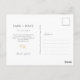 These modern minimalist wedding save the date postcards feature a boho arch couple photo, delicate imitation gold floral elements and a contemporarty set of fonts in jet black. Flower detail is repeated at the back. This design is contemporary and chic. Perfect for the stylish and elegant couple.
