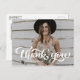 White Bold Retro Script Photo Graduation Thank You Postcard | Send thanks with this customisable landscape thank you postcard. It features retro script and simple typography. This will be perfect for weddings, graduations and so much more.