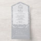 White Botanicals on Grey Wedding All In One Invitation