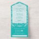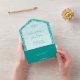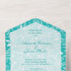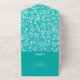 Elegant white botanicals and dots on turquoise (or any colour), these tri-fold wedding invitations feature your details in chic lettering in sections and a detachable RSVP card for guests to complete and return. **REMEMBER to put a stamp on the RSVP card section and include envelopes on your order to mail invites!